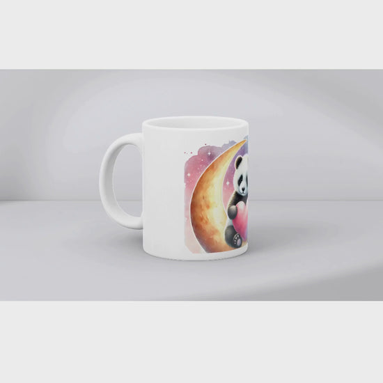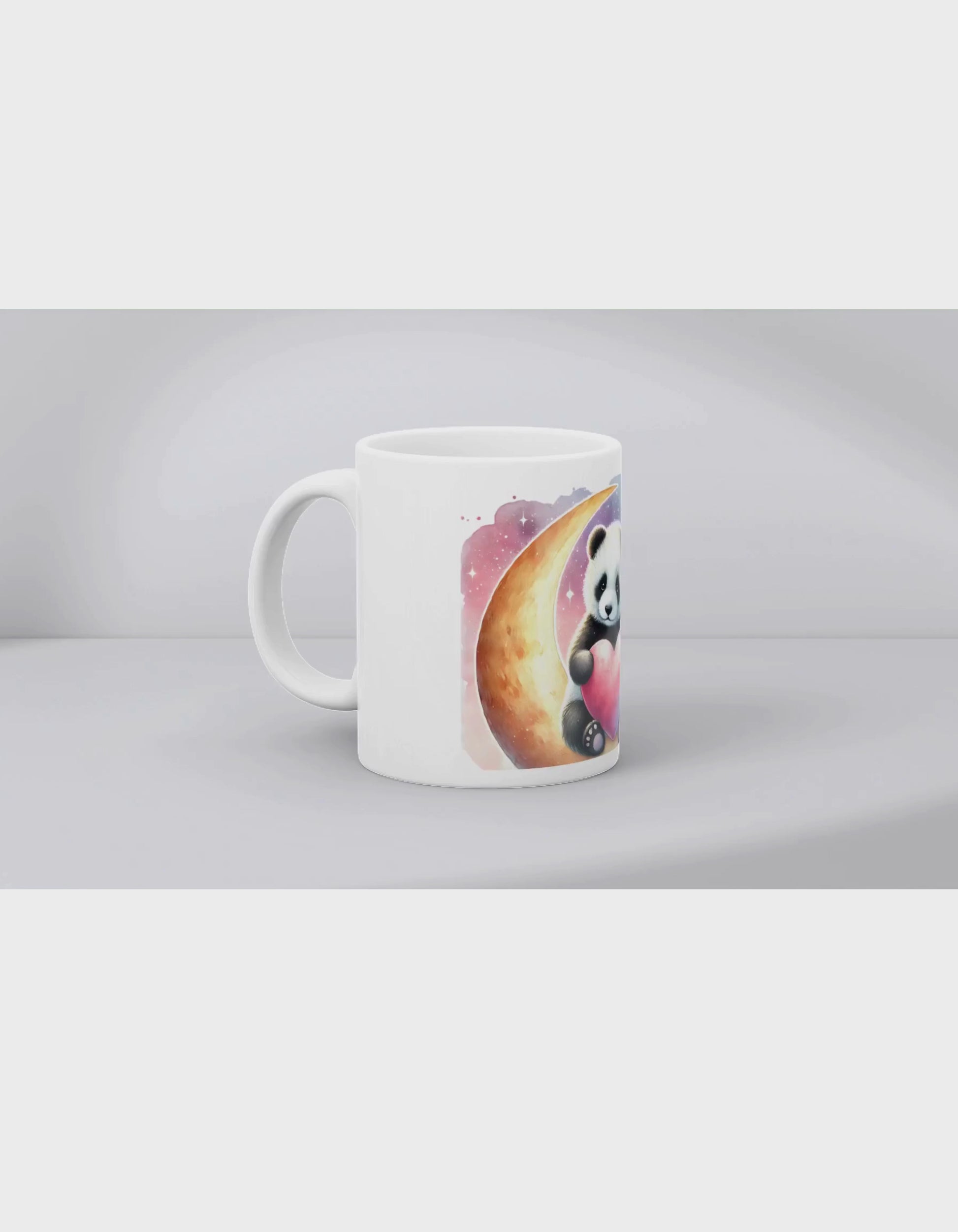 Bring a touch of adorable charm to your drinkware with our Love Panda Mug! Featuring an irresistibly cute panda hugging a pink heart under a dreamy crescent moon and starry sky, this mug is designed to melt hearts — one sip at a time.
